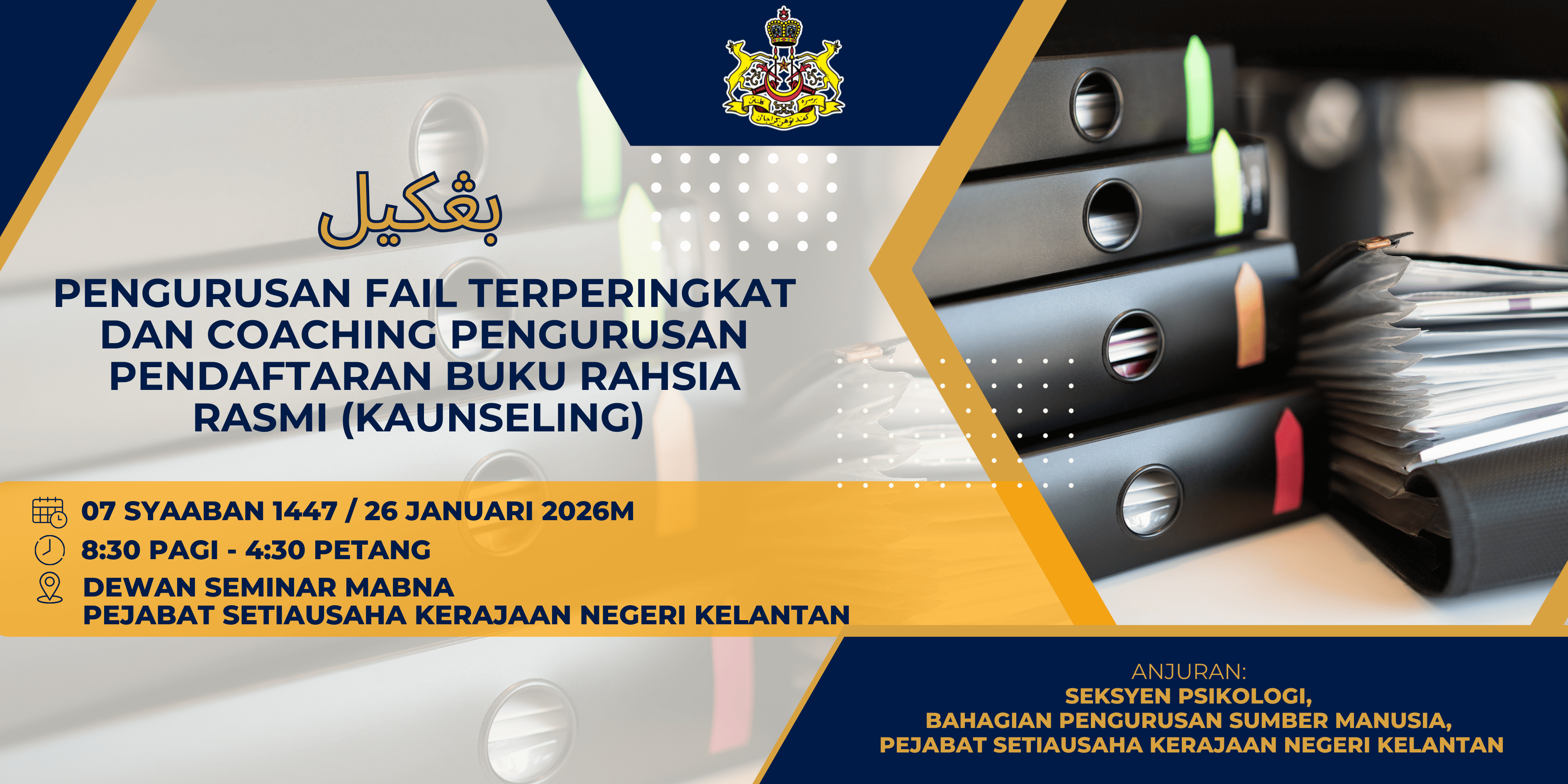 BENGKEL PENGURUSAN FAIL TERPERINGKAT DAN COACHING PENGURUSAN PENDAFTARAN BUKU RAHSIA RASMI (KAUNSELING)