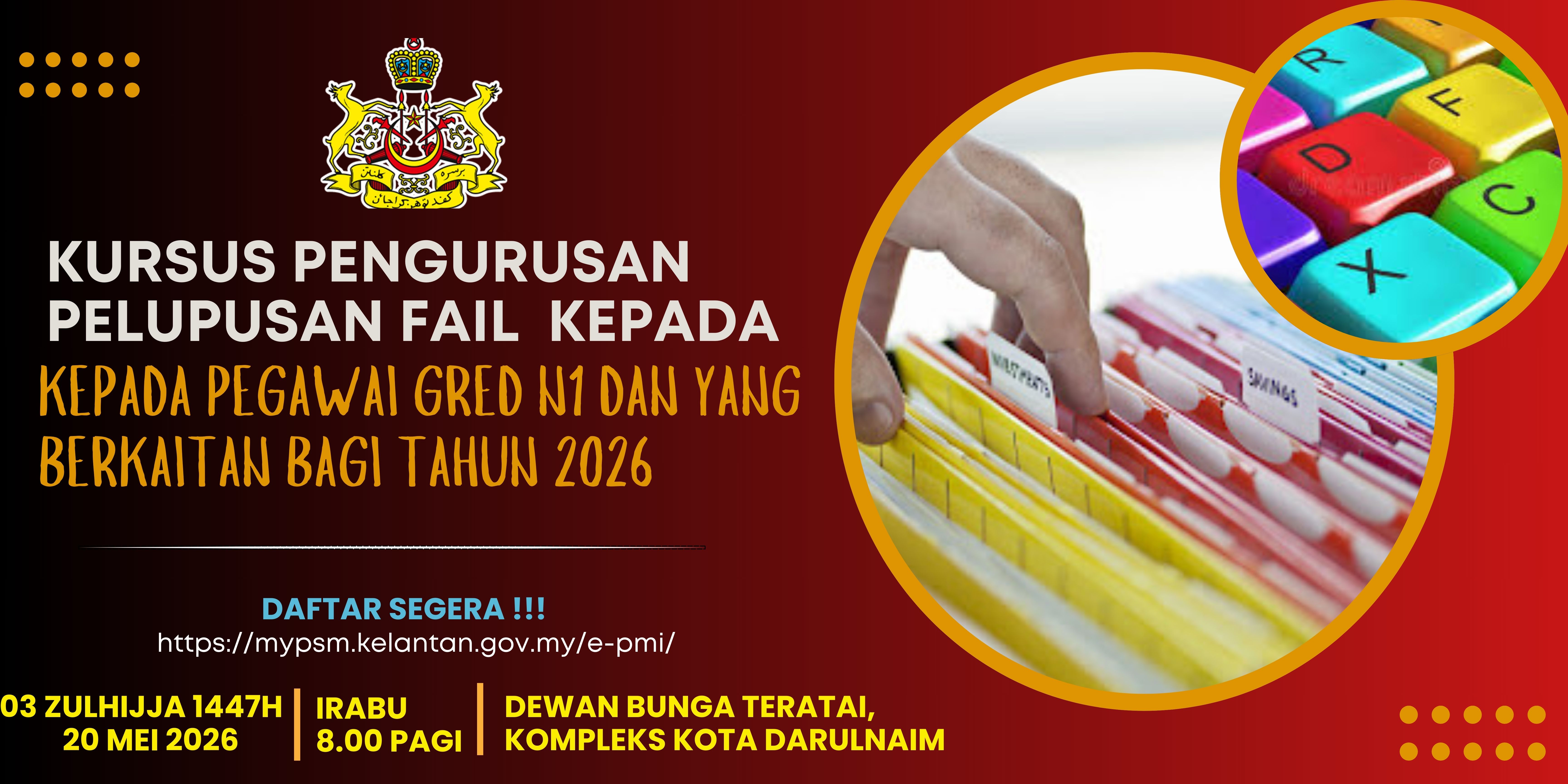 KURSUS PENGURUSAN PELUPUSAN FAIL KEPADA PEGAWAI GRED N 1 DAN YANG BERKAITAN BAGI TAHUN 2026